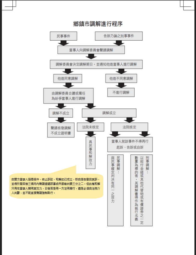4、尊重當事人意願:調解程序之開始至結束,均至當事人自主決定,調解人雖可勸諭雙方當事人讓步,但沒有經過當事人同意,調解並不會成立。